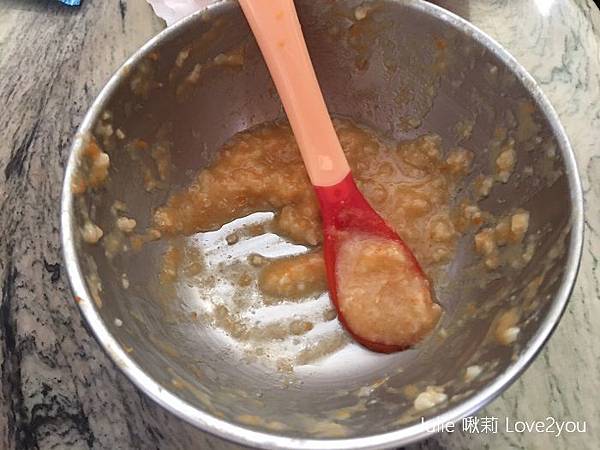 把悶燒罐裡頭的「原淬寶寶粥」倒出來