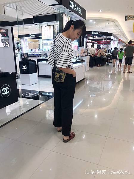 條紋上衣也是黑白條紋與褲子顏色有搭到 就不會顯得衝突