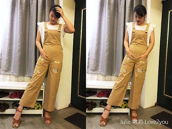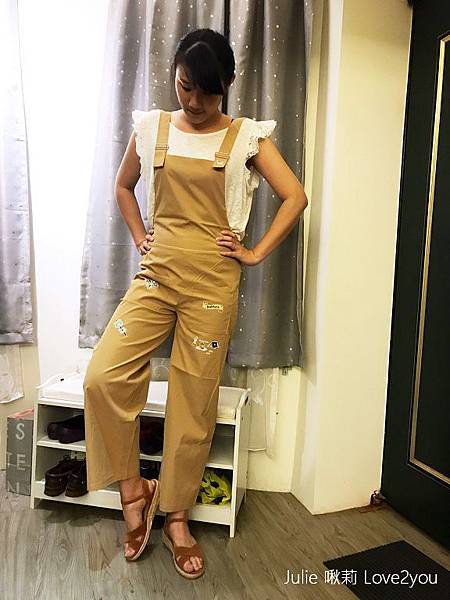 卡基色的吊帶褲 我選擇白色上衣來作搭配