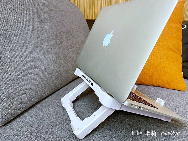 把筆電架高避免低頭、舒緩肩頸