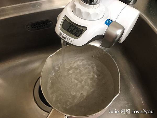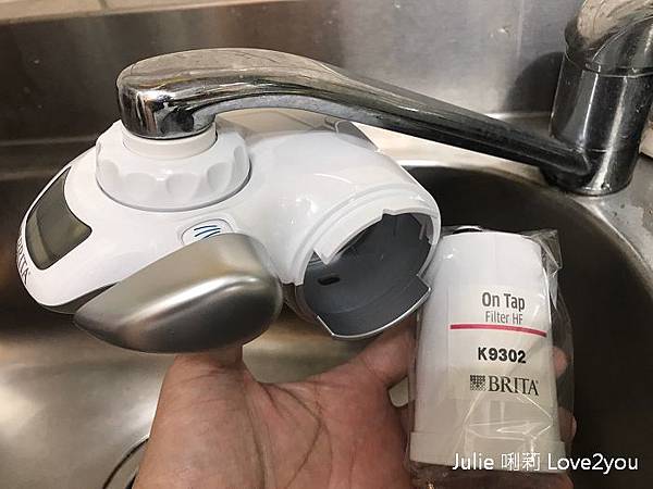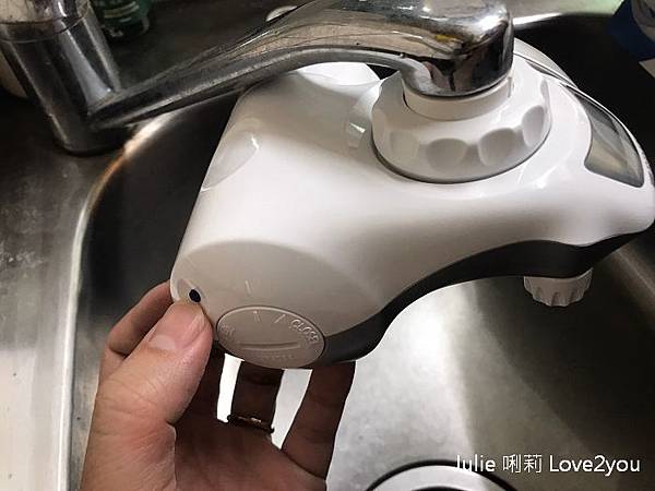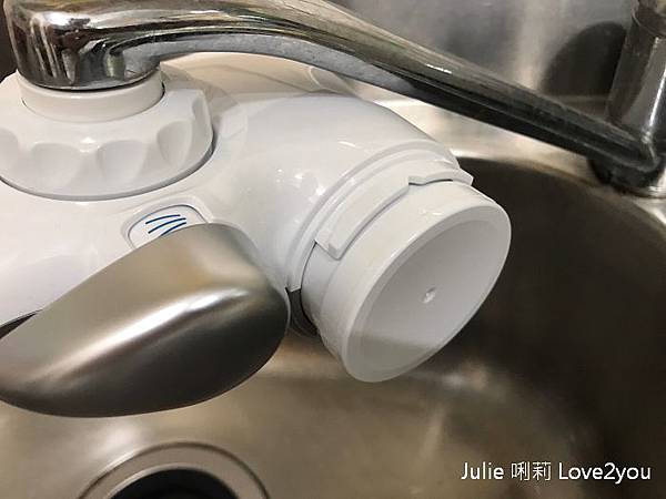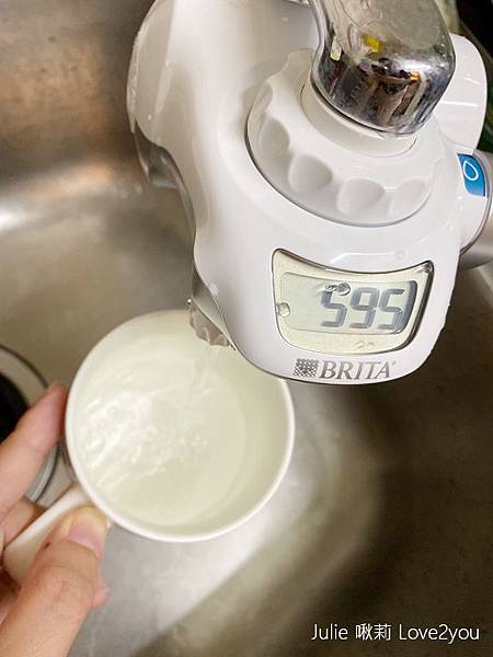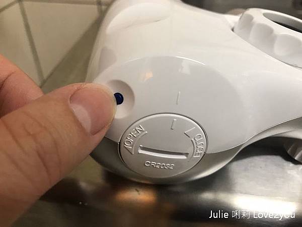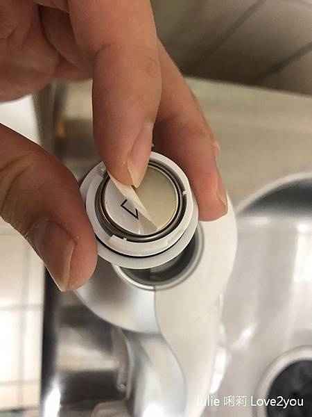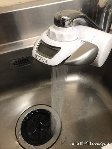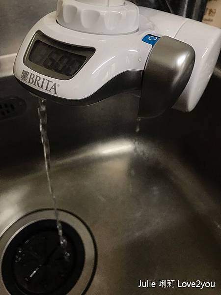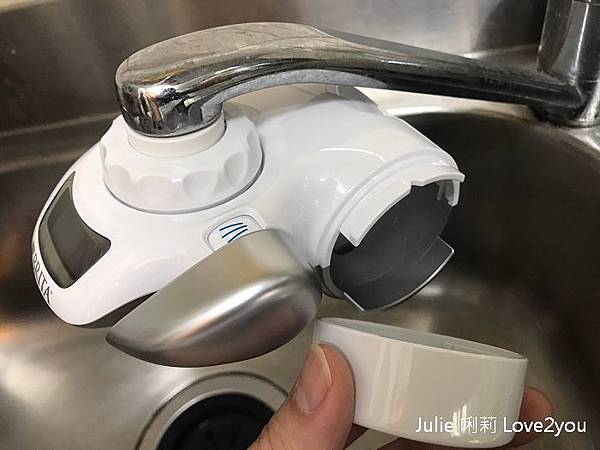 在Brita龍頭式濾水器左邊有電池槽