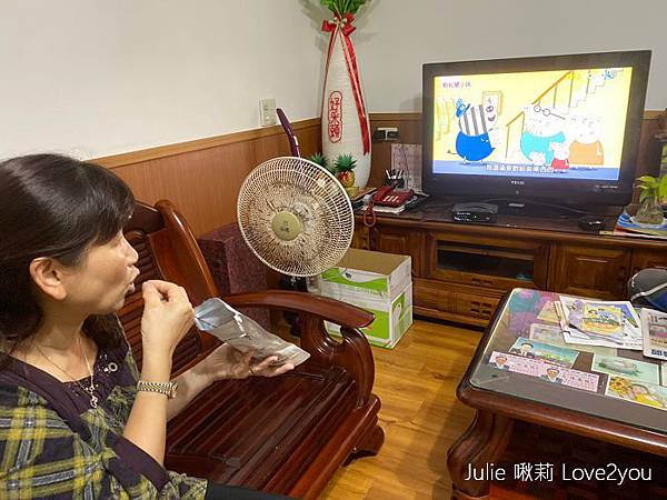 當然老媽也變成是他看電視的零嘴了