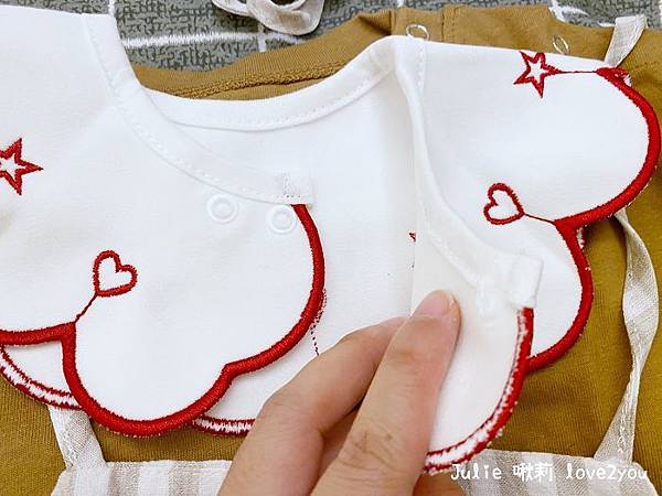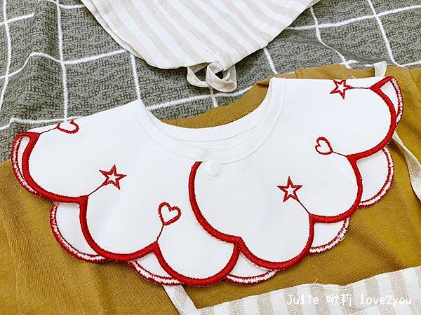 這款圍兜兜車縫設計都很用心 還有調節尺寸的按扣