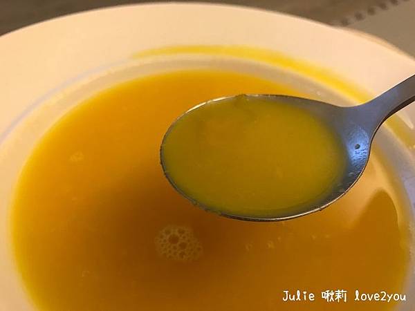 相當濃稠,看不到整塊南瓜,因為被打成泥製作