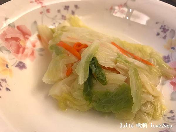 是水煮的高麗菜,清脆爽口不軟爛,還帶有一點清甜
