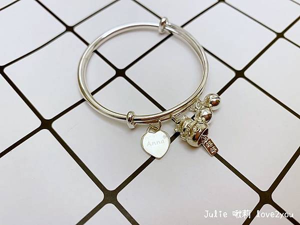 我自己的手鐲刻上的是 Julie (英文名)+♥
