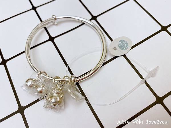 上頭的吊飾就像是大人們會買的P牌純銀手鍊一樣
