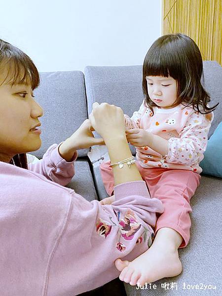 而荳荳的手鐲刻上的是 Anna (英文名)+♥