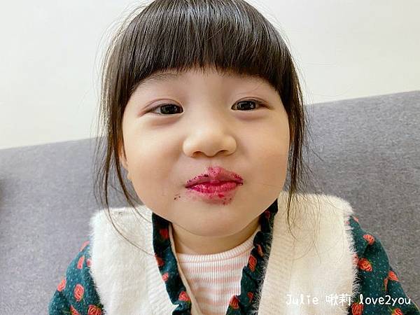 滿嘴紅色 可愛極了