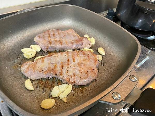 最後還是買了需要下鍋煎烤的豬排 有點口是心非