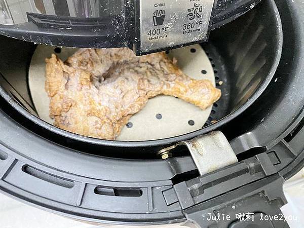 嚴選國產雞腿肉,經過氣炸鍋一炸,反而不會肉柴肉老,還依舊保持軟嫩、多汁
