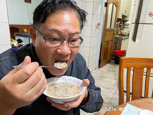 這一碗粥的份量老媽吃還ok 老爸就覺得不夠 可能需要吃個兩碗