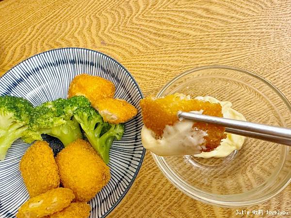 搭配的塔塔醬帶有淡淡的酸味和些許甜味,酸甜適中