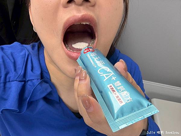每天一包,隨手倒進嘴裡喝水就能補足一天的鈣質,粉末細緻好吸收
